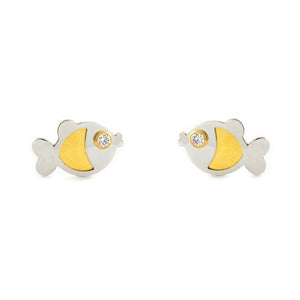 Pendientes Niña Oro Bicolor 9 Quilates (375/1000) Pez Circonita Mate y Brillo