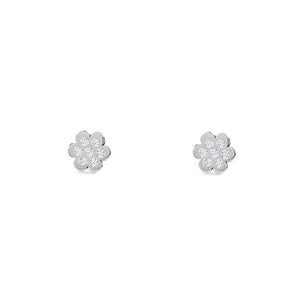 Pendientes Niña Oro Blanco 9 Quilates (375/1000) Flor Circonita