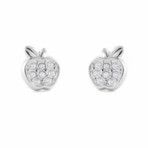 Pendientes Niña Oro Blanco 9 Quilates (375/1000) Manzana Circonita