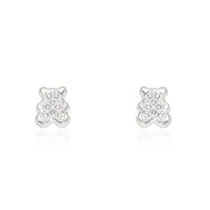 Pendientes Niña Oro Blanco 9K Oso Circonitas Brillo