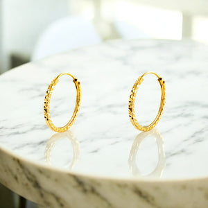 Pendientes Oro Amarillo 18K Aros Cuadrado Tallados 10 x 1,2 mm