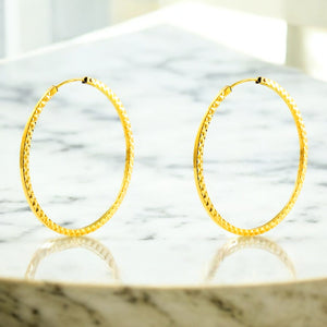 Pendientes Oro Amarillo 18K Aros Cuadrado Tallados 40 x 1,2 mm
