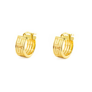Pendientes Oro Amarillo 18K Aros Rectangular Greca 14 x 6 mm