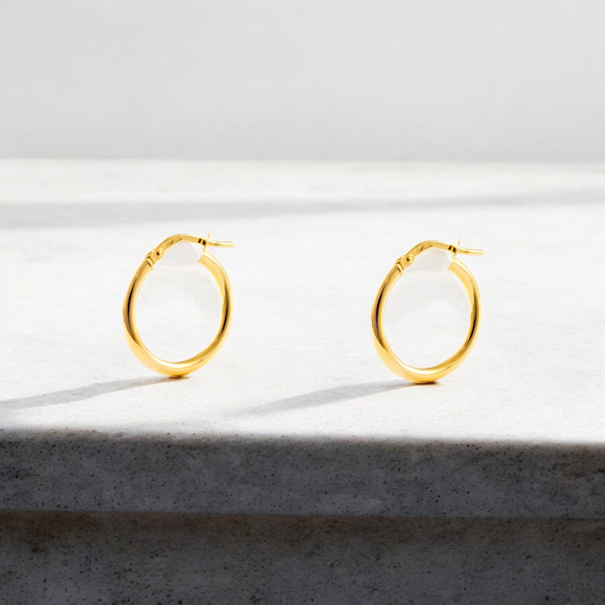 Pendientes Oro Amarillo 18K Aros Redondo Brillo 11 x 1.5 mm