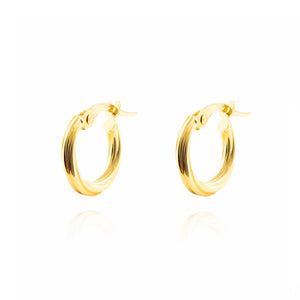 Pendientes Oro Amarillo 18K Aros Redondo Reliados Brillo 12 x 2 mm