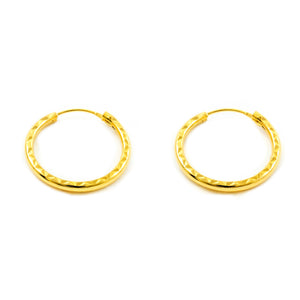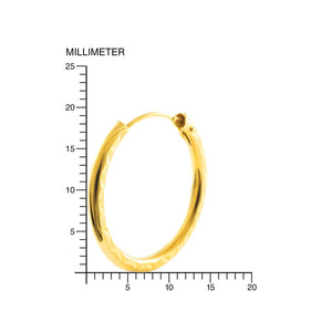 Pendientes Oro Amarillo 18K Aros Redondo Tallados 20 x 2 mm