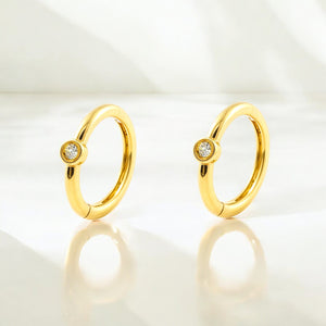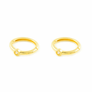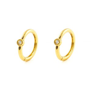 Pendientes Oro Amarillo 9K Aros Redondo Circonita Brillo 10 x 2 mm