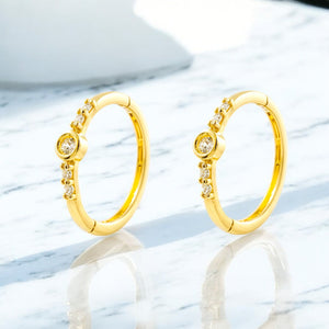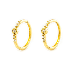 Pendientes Oro Amarillo 9K Aros Redondo Circonita Brillo 12 x 2,5 mm