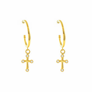 Pendientes Oro Amarillo 9K Aros Redondo Cruz Circonita Brillo 27 x 6 mm