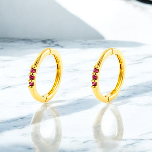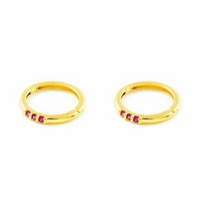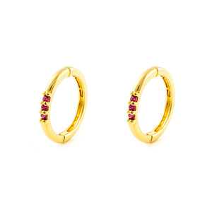 Pendientes Oro Amarillo 9K Aros Redondo Rubies Preciosos Sintéticos Brillo 10 x 1,15 mm