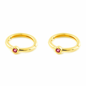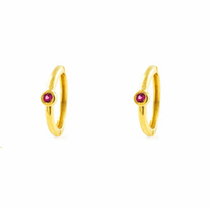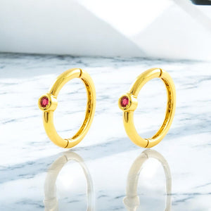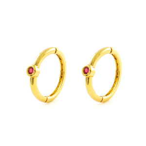 Pendientes Oro Amarillo 9K Aros Redondo Rubies Preciosos Sintéticos Brillo 10 x 2 mm