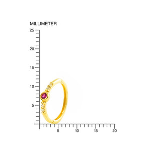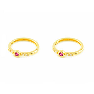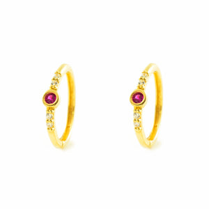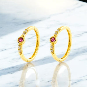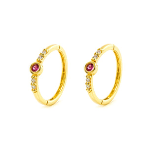 Pendientes Oro Amarillo 9K Aros Redondo Rubies Preciosos Sintéticos Brillo 12 x 2,5 mm