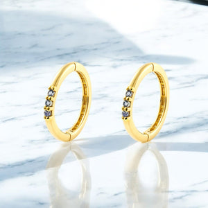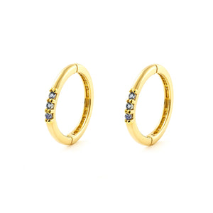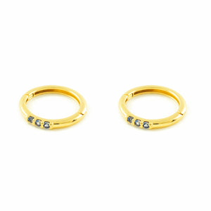 Pendientes Oro Amarillo 9K Aros Redondo Zafiros Preciosos Sintéticos Brillo 10 x 1,15 mm