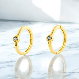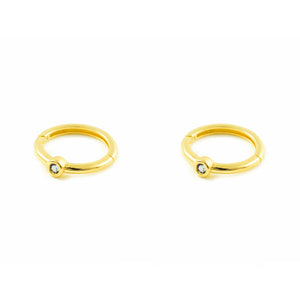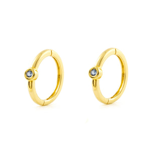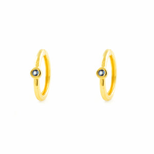 Pendientes Oro Amarillo 9K Aros Redondo Zafiros Preciosos Sintéticos Brillo 10 x 2 mm