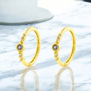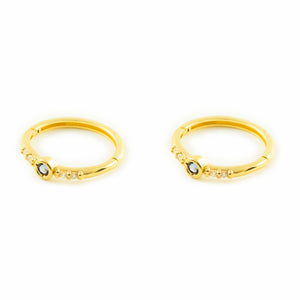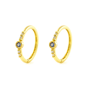Pendientes Oro Amarillo 9K Aros Redondo Zafiros Preciosos Sintéticos Brillo 12 x 2,5 mm