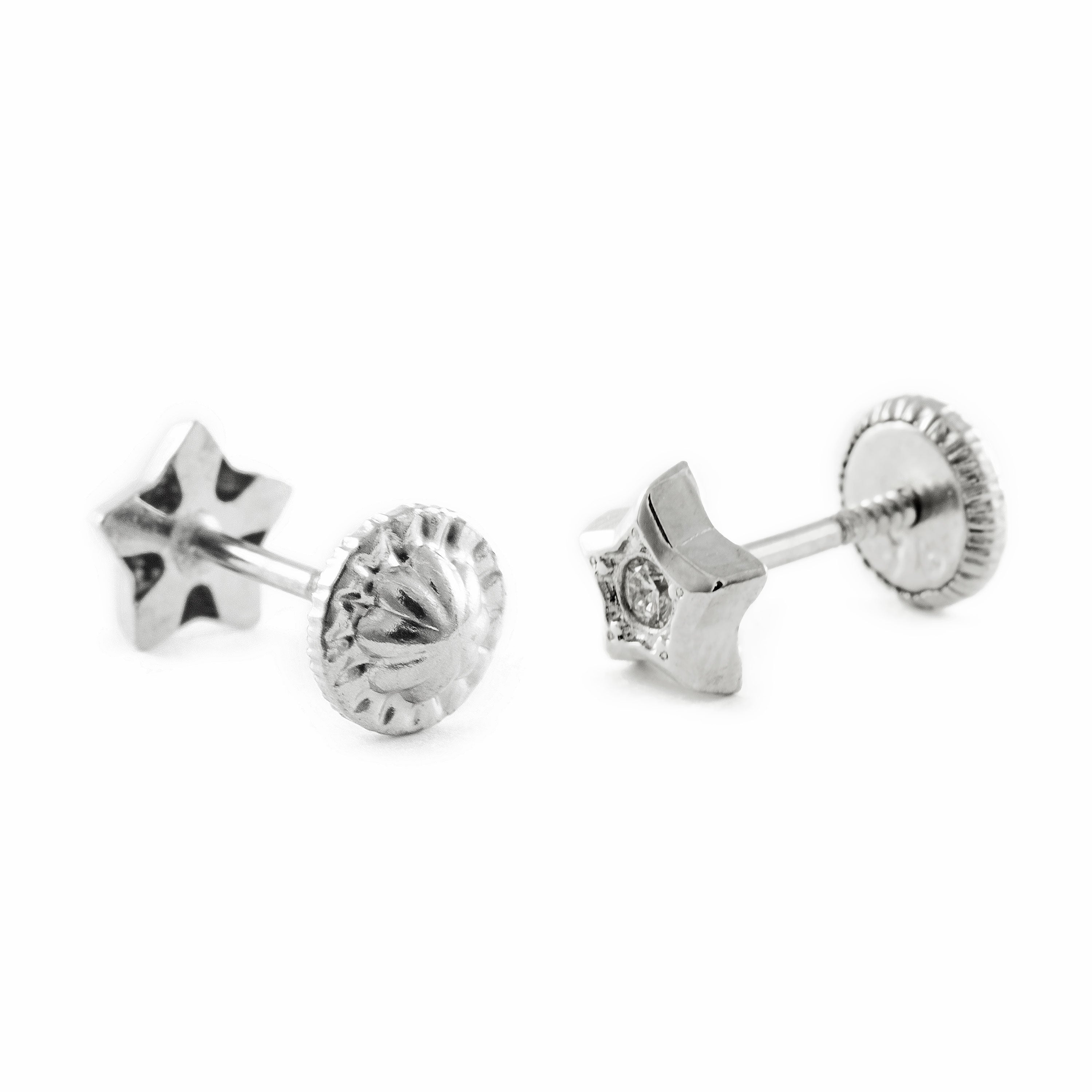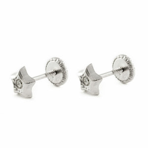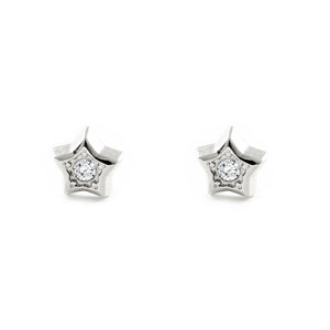 Pendientes Oro Blanco 9K Estrella Diamante Brillo
