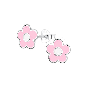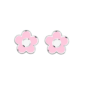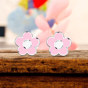 Pendientes Plata de Ley 925 Flor Margarita Blanco-Rosa Brillo