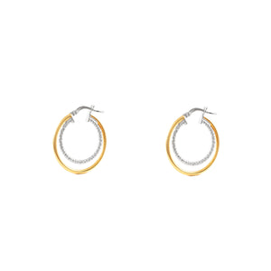 Pendientes Plata de Ley Bicolor Aros Redondo Dobles Brillo y Textura 25 x mm