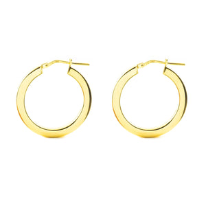 Pendientes Plata de Ley Dorado Aros Cuadrados Brillo 26 x 3 mm