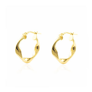 Pendientes Plata de Ley Dorado Aros Rectangular Reliados Brillo 21 x 4 mm