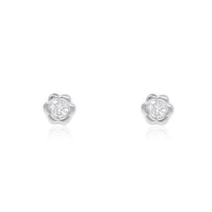 Pendientes Plata de Ley Flor Circonita Brillo