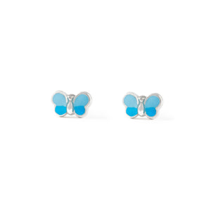 Pendientes Plata de Ley Mariposa Esmalte Azul Brillo