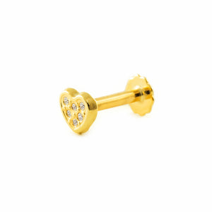 Piercing Oro Amarillo 9K Cartilago Corazón Circonitas Brillo