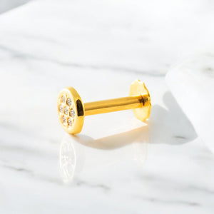Piercing Oro Amarillo 9K Cartilago Redondo Circonitas Brillo