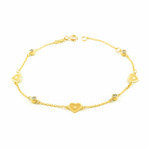 Pulsera Oro 9 Quilates (375/1000) Corazones Circonita Mate y Brillo