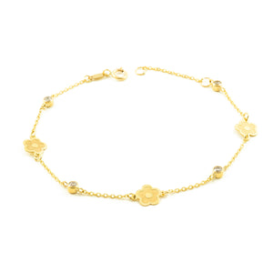 Pulsera Mujer-Niña Oro Amarillo 9K Flores Circonitas Mate y Brillo 18 cm