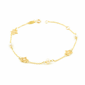 Pulsera Oro 9 Quilates (375/1000) Estrellas Perla Redonda 3,5 mm Mate y Brillo