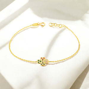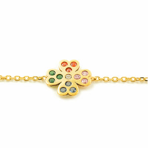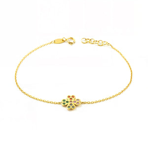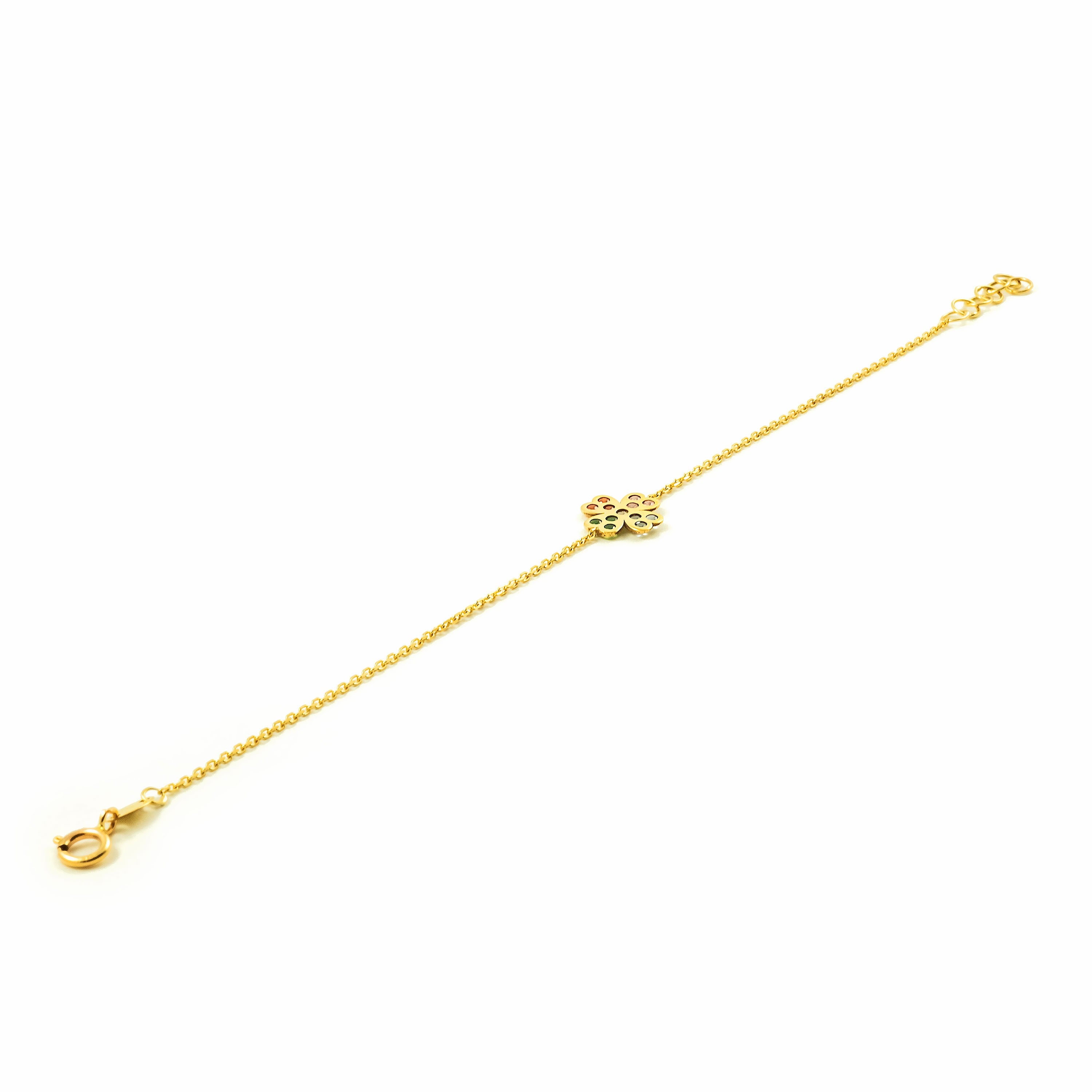 Pulsera Mujer Oro Amarillo 9K Cuatrebol Circonita Color Brillo 17 cm
