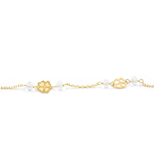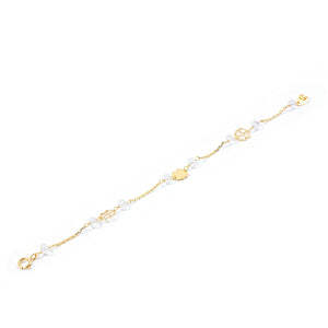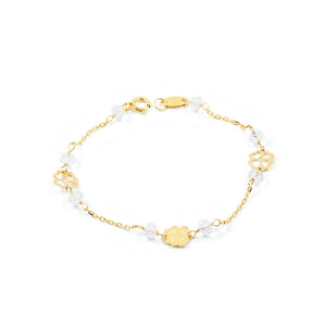 Pulsera Niña Oro Amarillo 18K Flores Rosa Mate y Brillo 13 cm