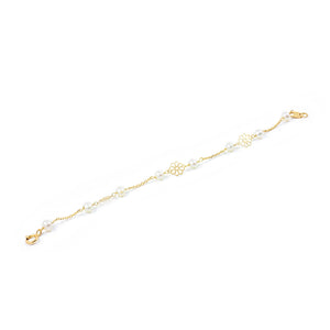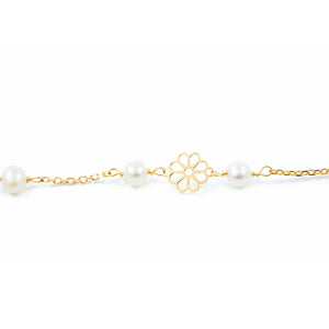 Pulsera Niña Oro 18 Quilates (750/1000) Flor Perla Redonda 3,5 mm