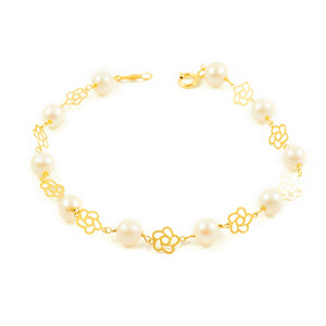 Pulsera Niña Oro 18 Quilates (750/1000) Flor Perla Redonda 5,5 mm