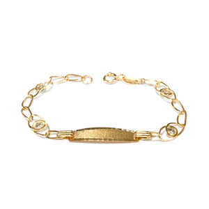Pulsera Niña Oro Amarillo 18K Personalizada Esclava Circonita Mate y Brillo 13 cm