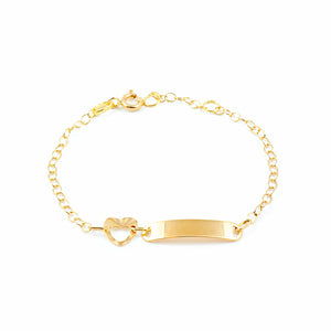 Pulsera Niña Oro Amarillo 18K Personalizada Esclava Corazón Brillo y Textura 14 cm