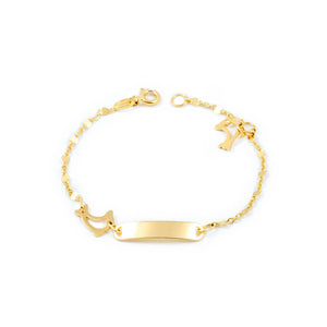 Pulsera Niña Oro Amarillo 18K Personalizada Esclava Delfín Brillo 14 cm