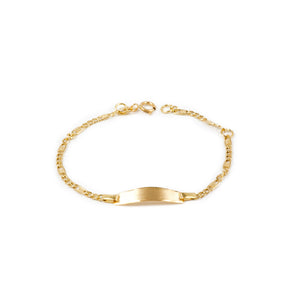 Pulsera Niña Oro Amarillo 18K Personalizada Esclava Figaro 3X1 Mate y Brillo 14 cm