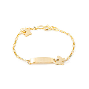Pulsera Niña Oro Amarillo 18K Personalizada Esclava Mariposa Brillo 14 cm