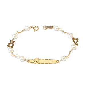 Pulsera Niña Oro Amarillo 18K Personalizada Esclava Oso Redonda 4 mm Mate y Brillo 13 cm