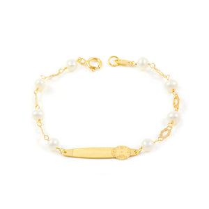 Pulsera Niña Oro Amarillo 18K Personalizada Esclava Reloj Redonda 3,5 mm Mate y Brillo 14 cm