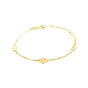 Pulsera Niña Oro Amarillo 9K Corazón Circonita Brillo 14 cm