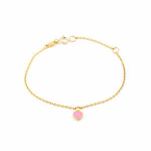 Pulsera Niña Oro Amarillo 9K Esmalte Corazón Rosa Brillo 14 cm