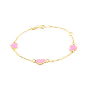 Pulsera Niña Oro Amarillo 9K Esmalte Corazón Rosa Brillo 14 cm