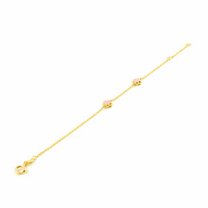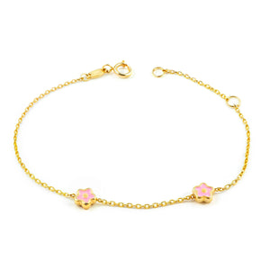 Pulsera Niña Oro Amarillo 9K Esmalte Flores Rosa Brillo 15 cm