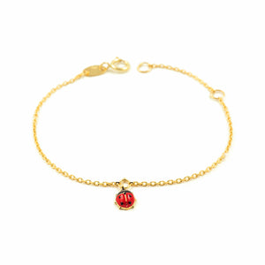 Pulsera Niña Oro Amarillo 9K Esmalte Mariquita Rojo-Negro Brillo 14 cm