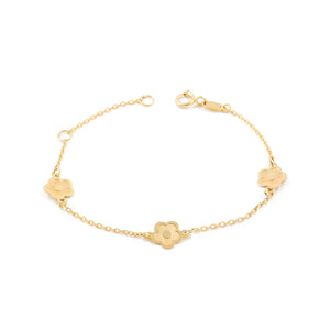 Pulsera Niña Oro 9 Quilates (375/1000) Flores Mate y Brillo