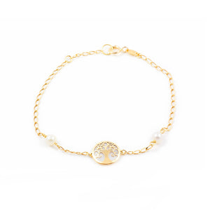 Pulsera Niña Oro 9 Quilates (375/1000) Arbol de la vida Perla Redonda 4 mm