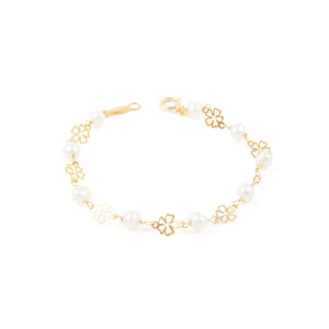Pulsera Niña Oro 9 Quilates (375/1000) Flor Perla Redonda 4 mm